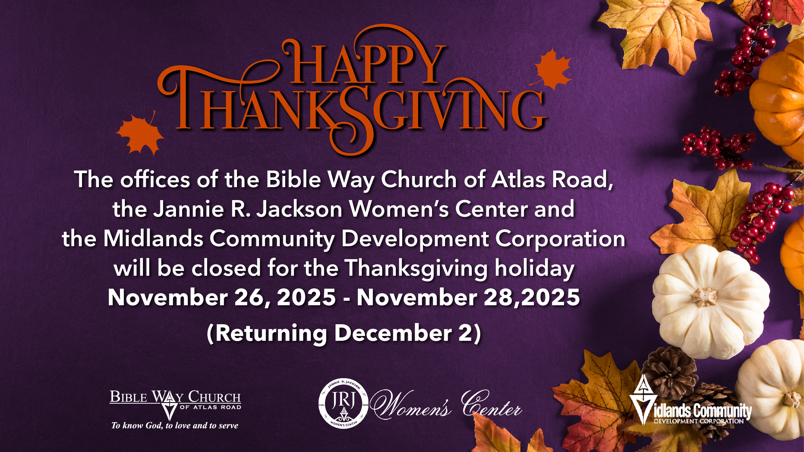 Church offices will be closed Wednesday, November 26- Friday, November 28, 2025, for the Thanksgiving Observance.