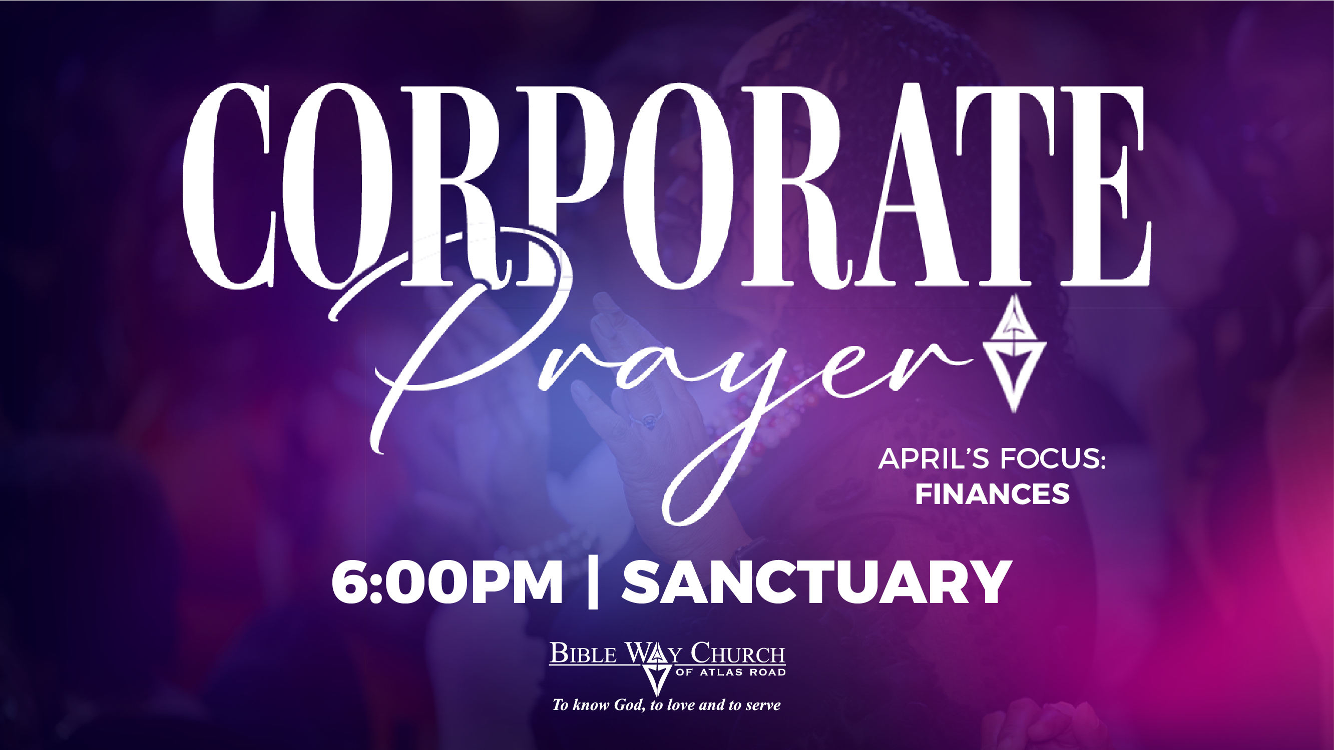 The focus for April is Finances. Join us at 6:00pm for Corporate Prayer. You’ll be glad you did!