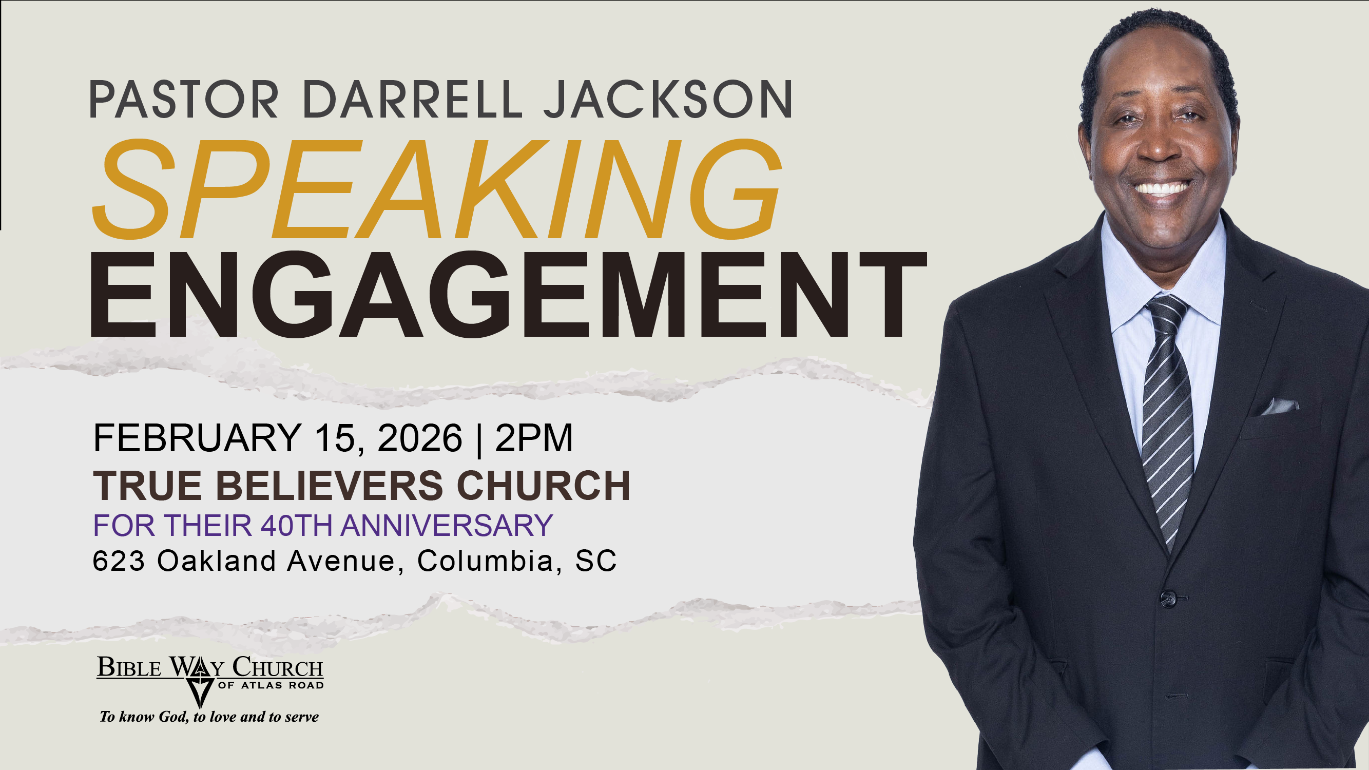 Pastor Darrell Jackson will be the guest speaker at True Believers Church for their 40th Anniversary. All are invited to join him.
