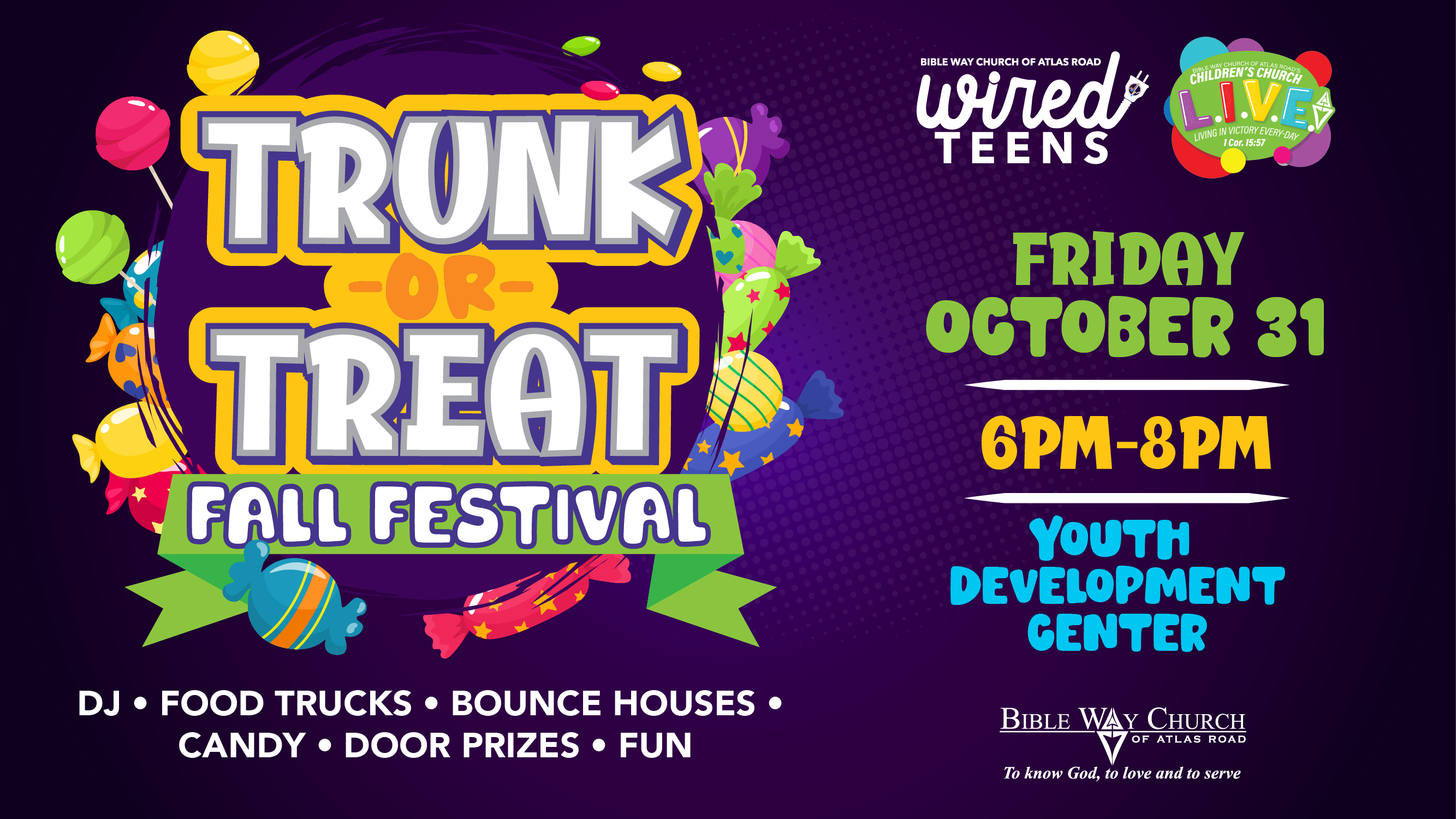 Bring all the children, the young, and the young at heart to our annual Trunk-or-Treat Fall Festival